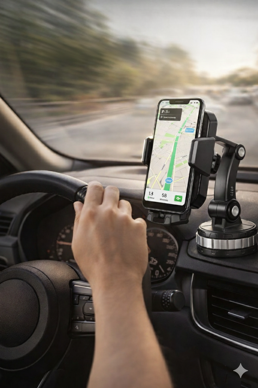 حامل تلفون عملي يخلّيك تستخدم هاتفك وانت تسوق بكل راحة، بدون تشتيت، ويخليك مركّز على الطريق.